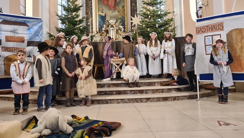 Aber besonders die Kinder, die Lust haben beim Krippenspiel mitzuwirken, sind hier angesprochen: Wer mitmachen möchte, meldet sich bitte bis zum 09.11.2025 mit dem Anmeldeformular an. Den Anmeldezettel liegt hinten in der Kirche aus.