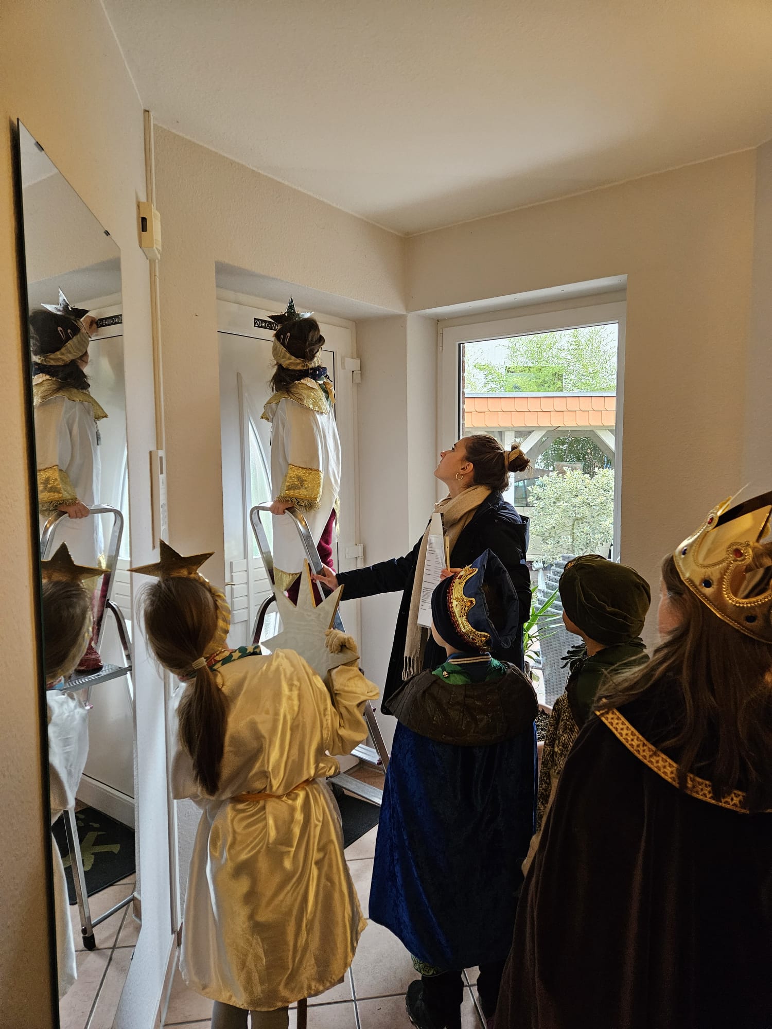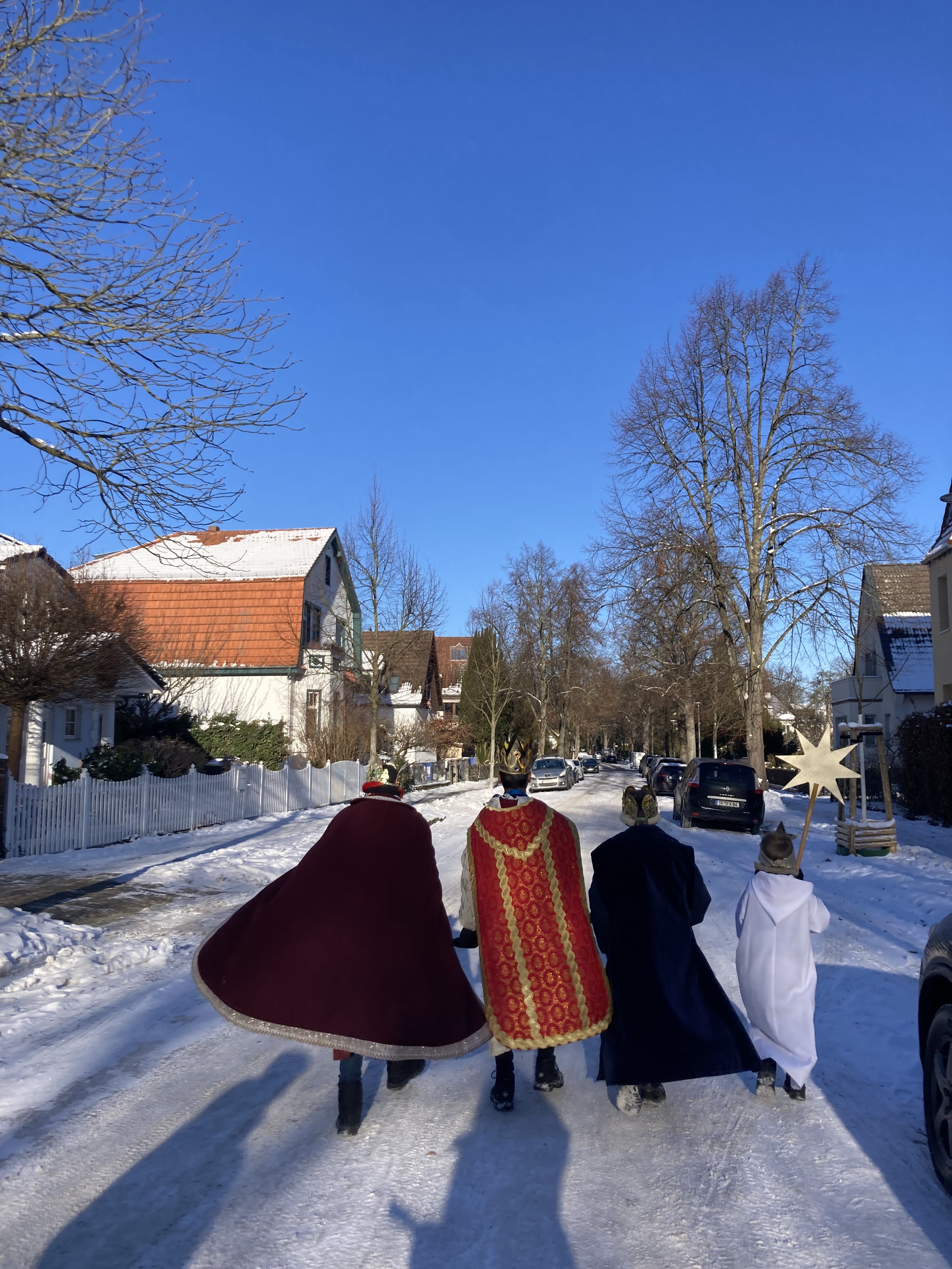 Funkelnde Kronen, königliche Gewänder und ganz viel Spaß: Das sind die Sternsinger! Sie ziehen von Haus zu Haus, segnen die Häuser und bitten die Menschen um eine Spende für Kinderhilfsprojekte. Jedes Jahr kannst du ab November bis Januar als Sternsinger*in aktiv sein und dich für die Kinderrechte einsetzen. Wir sind jedes Jahr ganz schön viele Kinder, die einfach Spaß am Zusammensein haben, viel miteinander singen, lachen und dabei auch noch etwas Gutes für die Kinder und Menschen in der Welt vollbringen. Manchmal verbringen wir auch im Sommer einen Tag oder ein Wochenende zusammen, nur um zu spielen und die Zeit in der Gruppe zu genießen, was immer ein tolles Erlebnis ist. Unten kannst du ein paar Bilder aus den letzten Jahren sehen, um einen Eindruck zu gewinnen :)